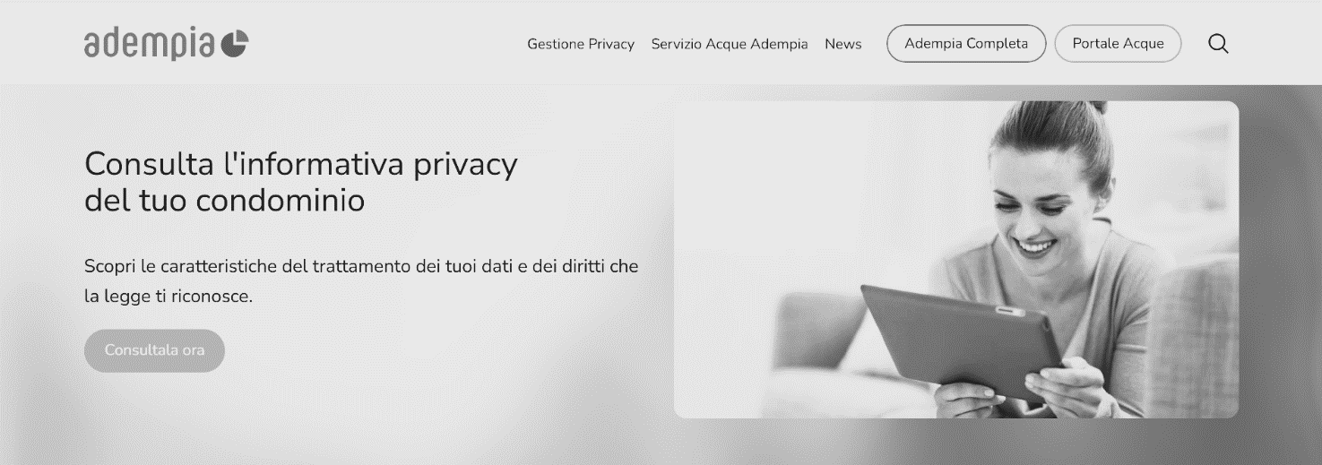 "informativa privacy ai sensi dell'art. 13 del Regolamento Europeo 2016/679 (GDPR) è reperibile sul sito: www.adempia.it